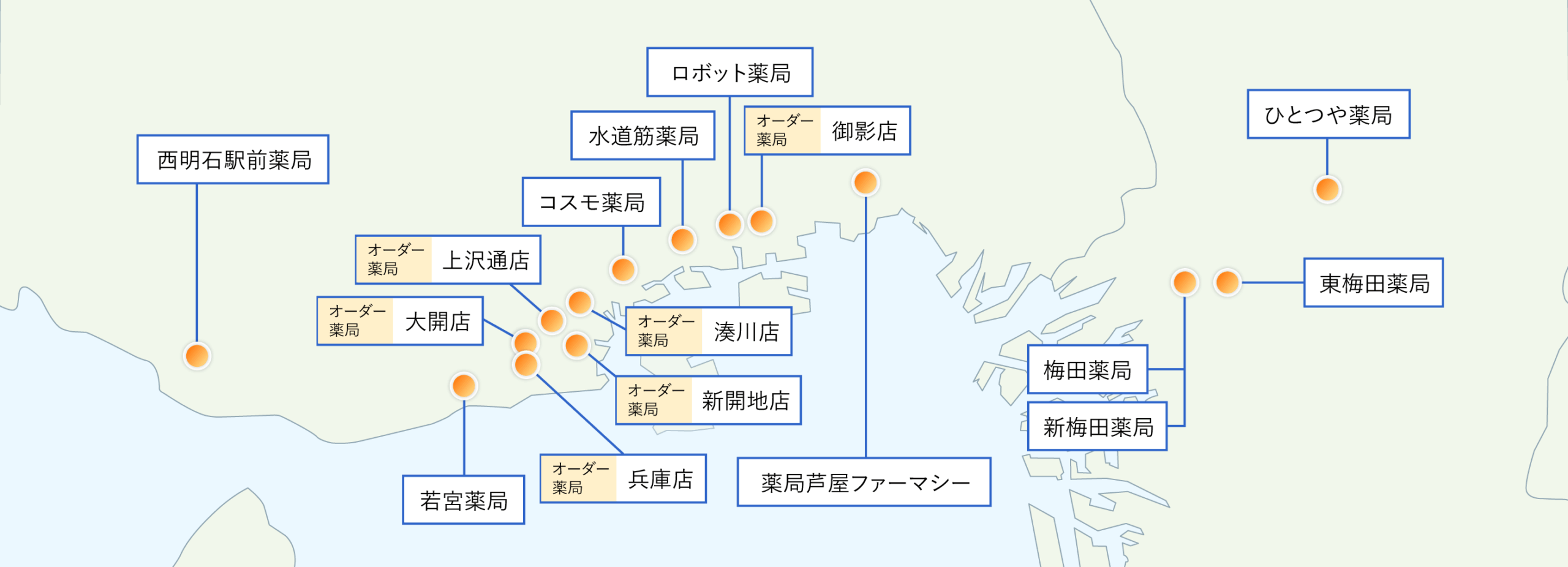 2011年に創業し、兵庫県で6店舗、大阪府で4店舗の薬局を直営しております。 全薬局で、かかりつけ薬剤師制度、他職種連携、在宅医療に積極的に取り組んでおります。 患者さまに寄り添い、地域から最も信頼される薬局になることを目指しております。